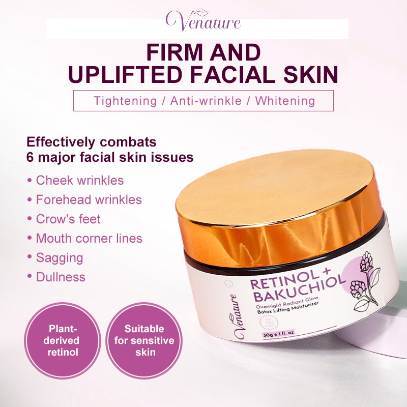 Comprehensive anti-aging and wrinkle reduction: This is the serum's most prominent benefit. The powerful combination of Retinol and Bakuchiol works synergistically to stimulate the production of collagen and elastin - two proteins essential for skin elasticity and firmness. This helps fill in fine lines, deep grooves, and visibly improve sagging skin, leaving skin smooth and youthful.